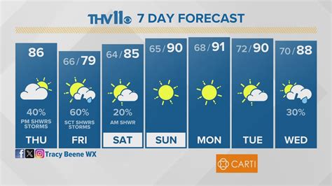 Alright, let’s get down to the nitty-gritty of the Arkansas weather forecast for the next 14 days . While specific daily details can fluctuate, we can look at general trends and probabilities. Typically, for a two-week outlook, you’ll see a range of temperatures and a probability of precipitation for each day. What does this mean for you, practically? Well, if the forecast shows consistently high temperatures with low chances of rain, it’s probably a good time to plan those outdoor activities like hiking in Pinnacle Mountain State Park or visiting a local farmers market. You’ll likely see daytime highs in the 80s or 90s Fahrenheit during the warmer months, and perhaps dipping into the 50s or 60s during cooler periods. Conversely, if the 14-day Arkansas weather forecast indicates a series of days with a high probability of rain and cooler temperatures, you might want to have indoor options ready – think museums in Little Rock, exploring Blanchard Springs Caverns, or catching a show. During these periods, expect highs potentially in the 60s or 70s, and lows that could drop into the 40s or 50s, especially if a cold front is moving through. Winter forecasts will show chances of freezing temperatures and, less frequently, snow. Keep an eye on the chance of precipitation as this is your cue for how likely you are to encounter wet or snowy conditions. A 20% chance means it’s unlikely, while an 80% chance means it’s highly probable. Remember, the further out you look in the 14-day forecast, the more generalized the information becomes. The first 3-5 days are usually the most accurate, with predictions becoming less certain as you approach the 14-day mark. Still, it provides a valuable big-picture view for planning!