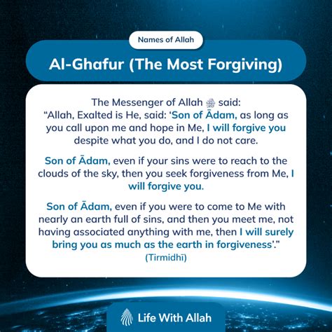 By internalizing these benefits, we can transform our lives and create a positive impact on the world around us. Understanding Al-Ghafur is not just about knowing a name of Allah; it’s about experiencing its transformative power in our hearts and actions.