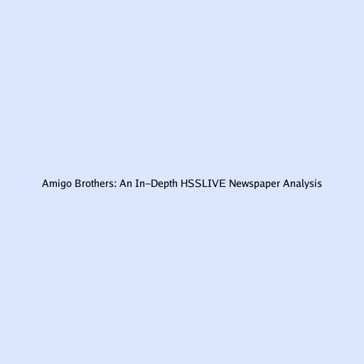 Amigo Brothers: An In-Depth HSSLIVE Newspaper Analysis