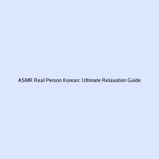 ASMR Real Person Korean: Ultimate Relaxation Guide