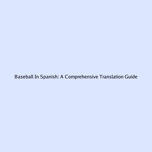 Baseball in Spanish: A Comprehensive Translation Guide