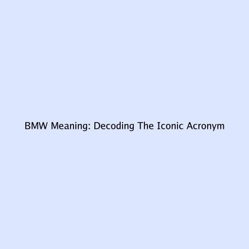 BMW Meaning: Decoding The Iconic Acronym
