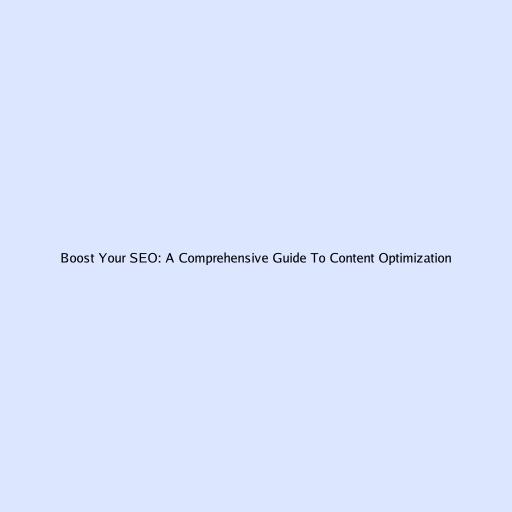 Boost Your SEO: A Comprehensive Guide To Content Optimization