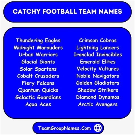 Thirdly, don’t underestimate the power of alliteration and puns. These can make your team name catchy and easy to remember. Names like “Fantastic Five,” “Marvelous Midfielders,” or “Striking Spartans” are all examples of how alliteration can create a memorable impact. Puns related to football terms or famous players can also be highly effective. For instance, “Net Results,” “Goals Aloud,” or “Losing Streak” can add a clever twist to your team’s identity. The key is to be creative and have fun with it. A well-crafted pun or alliterative name can stick in people’s minds long after the game is over. Ultimately, the goal is to find a name that your team loves and that represents your collective personality.