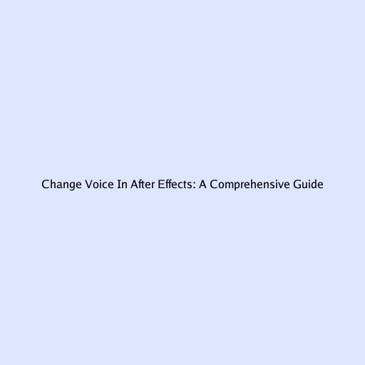 Change Voice In After Effects: A Comprehensive Guide