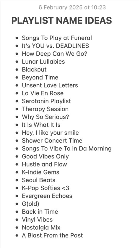 Before we jump into the ideas, let’s talk about why a good playlist name is so important. Think of it like this: your playlist name is the first impression. It’s what people see when they’re browsing for new music, and it’s what makes them decide whether or not to give your playlist a listen. A catchy , relevant , and creative playlist name can be the difference between obscurity and popularity. It’s not just about labeling a collection of songs; it’s about creating an identity, setting a vibe, and telling a story. Whether you’re curating a playlist for a specific mood, event, or genre, the name should immediately convey what listeners can expect. This is especially crucial in the age of streaming, where playlists are abundant and competition for listeners is fierce. Moreover, a well-chosen name can also enhance the personal enjoyment of your playlist. It can serve as a reminder of the memories associated with the songs, the emotions you were feeling when you created it, or the specific purpose it serves in your life. In essence, a great playlist name is an investment in the overall listening experience, both for you and for anyone you share it with.