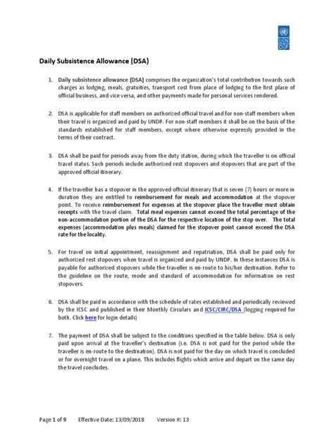 Eligibility for DSA generally extends to employees, government officials, consultants, and other individuals who are required to travel for work-related activities. The criteria for eligibility usually include pre-approval for travel, submission of a travel request or authorization, and adherence to the organization’s travel policy. It’s crucial to understand these eligibility requirements to avoid any misunderstandings or issues with reimbursement. Organizations often require documentation such as receipts for accommodation or other significant expenses to support the DSA claim, ensuring accountability and transparency.