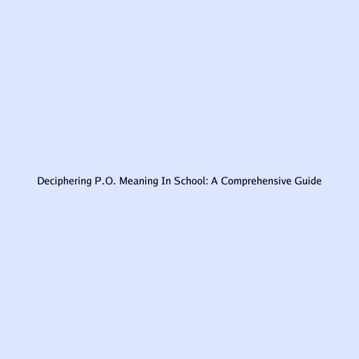 Deciphering P.O. Meaning in School: A Comprehensive Guide