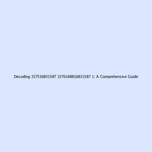 Decoding 157516031587 1576160816031587 1: A Comprehensive Guide