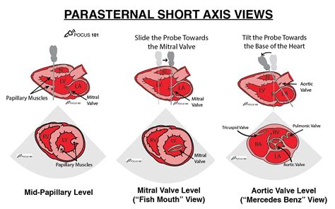 Let’s start with the parasternal views , which are obtained with the transducer positioned along the left side of your chest, near the sternum (breastbone). These views offer excellent views of the heart’s long axis and allow for detailed assessment of various structures. There are two main parasternal views : the parasternal long-axis view and the parasternal short-axis view.