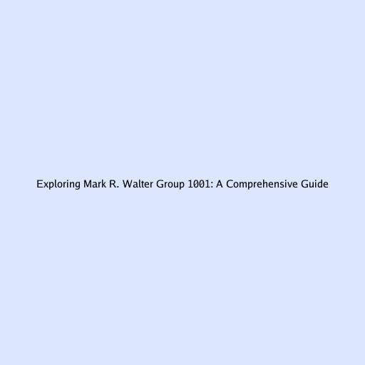 Exploring Mark R. Walter Group 1001: A Comprehensive Guide