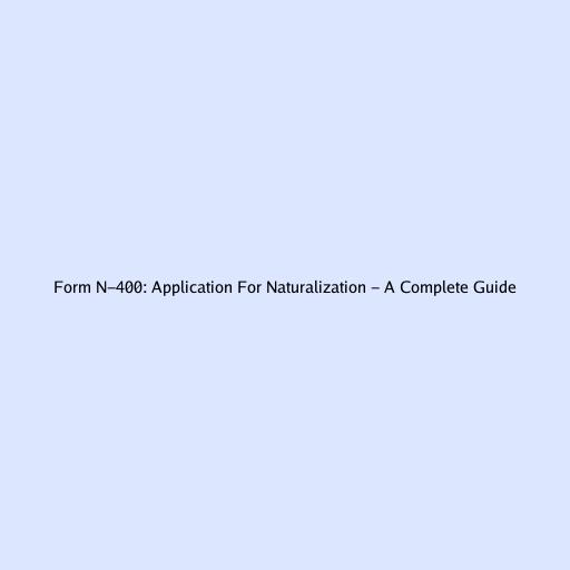 Form N-400: Application For Naturalization - A Complete Guide