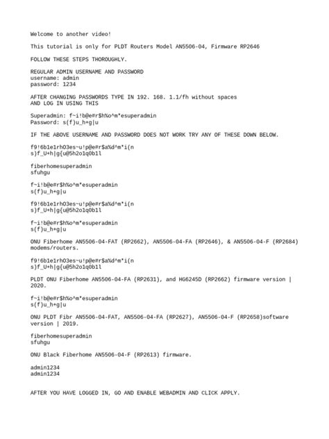 Before you go rummaging through your modem’s chassis or tearing apart your instruction manual, let’s just try some common default combinations. These are the ones that pop up most frequently for Globe at Home Fiber and other similar ISP equipment. The most classic combo is Username: admin and Password: admin . Give that a whirl first. If that doesn’t fly, try Username: admin with Password: password . Sometimes, ISPs use a slightly more secure default, so you might encounter something like Username: admin and Password: 1234 or Username: admin and Password: user . Another common one, especially for more advanced routers, can be Username: admin and Password: [blank] (meaning you just leave the password field empty). It’s also worth checking if your modem has a unique default password printed on that sticker we talked about. Sometimes it’s a mix of letters and numbers. If you’re logging in for the first time, these are your best bets. Remember to type them exactly as they appear, paying attention to capitalization if the password is case-sensitive. You’ll usually access the login page by typing your modem’s IP address into your web browser, which is often 192.168.1.1 or 192.168.254.254 . This is the crucial first step before you even try these passwords. So, try these combos, and hopefully, one of them unlocks the door to your Globe at Home Fiber admin password .