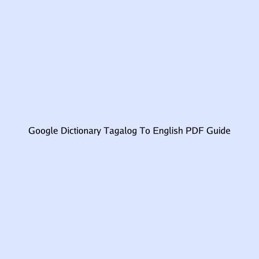 Google Dictionary Tagalog to English PDF Guide