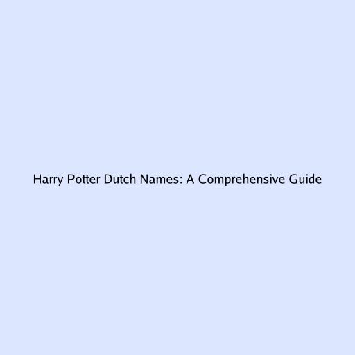 Harry Potter Dutch Names: A Comprehensive Guide
