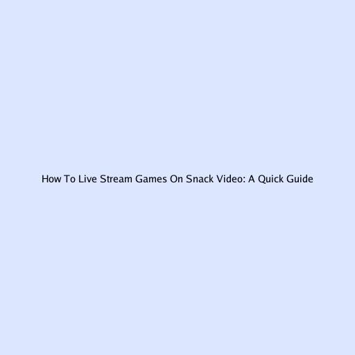 How To Live Stream Games On Snack Video: A Quick Guide