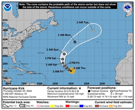 Alright, before we jump into the specifics of Hurricane Kirk , let’s quickly cover the basics of hurricane tracking. Understanding how these storms are monitored can help you make sense of the data and projections you see. Hurricane tracking involves a combination of sophisticated technologies and scientific expertise. Satellites play a crucial role, constantly monitoring weather patterns and cloud formations from space. These satellites provide valuable data on the storm’s size, intensity, and movement. Aircraft, often referred to as hurricane hunters, fly directly into the storm to gather detailed information about wind speeds, pressure, and temperature. These brave pilots and scientists provide invaluable data that can’t be obtained from remote sensing alone. Ground-based radar systems also contribute to tracking efforts, providing detailed views of the storm’s structure and intensity as it approaches land. The data collected from these various sources are fed into complex computer models that simulate the storm’s behavior. These models use mathematical equations to predict the storm’s future path and intensity based on current conditions and historical data. However, it’s important to remember that these models are not perfect, and their predictions can change as new data becomes available. Forecasters at agencies like the National Hurricane Center (NHC) analyze the model outputs and combine them with their own expertise to create official forecasts. These forecasts include information about the storm’s predicted path, intensity, and potential impacts, such as storm surge and rainfall. Understanding the uncertainties involved in hurricane tracking is crucial for making informed decisions. The “cone of uncertainty” is a visual representation of the range of possible paths that the storm could take. The storm is most likely to remain within the cone, however the size of the cone indicates the degree of uncertainty in the forecast. Always rely on official sources like the NHC for the latest information and heed any warnings or evacuation orders issued by local authorities. Staying informed and prepared is the best way to stay safe during a hurricane.