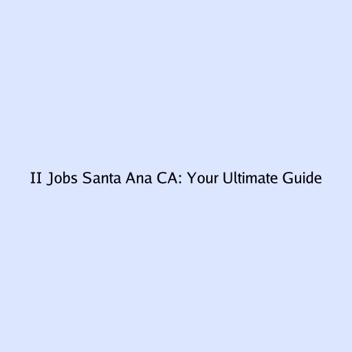 II Jobs Santa Ana CA: Your Ultimate Guide