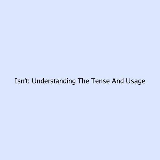 Isn't: Understanding The Tense And Usage