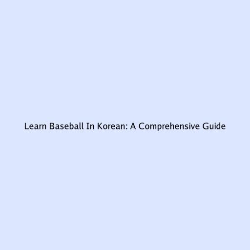 Learn Baseball in Korean: A Comprehensive Guide