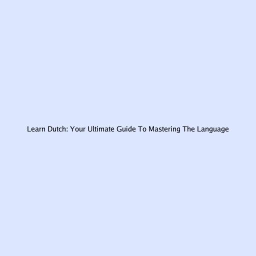 Learn Dutch: Your Ultimate Guide To Mastering The Language