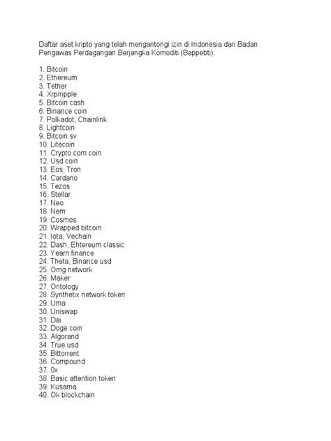 Again, this is just a snapshot, and the list can change. Always double-check with BAPPEBTI directly or through reputable Indonesian crypto exchanges to make sure the assets you’re interested in are currently approved.