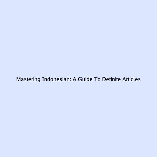 Mastering Indonesian: A Guide To Definite Articles