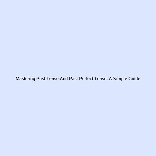 Mastering Past Tense and Past Perfect Tense: A Simple Guide