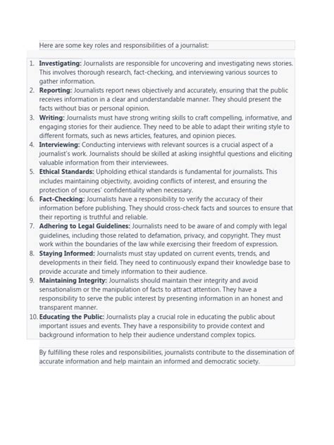 - Key Responsibilities of Medical Journalists