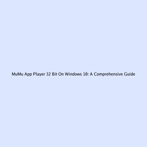 MuMu App Player 32 Bit On Windows 10: A Comprehensive Guide