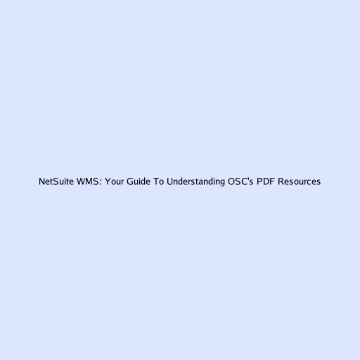 NetSuite WMS: Your Guide To Understanding OSC's PDF Resources