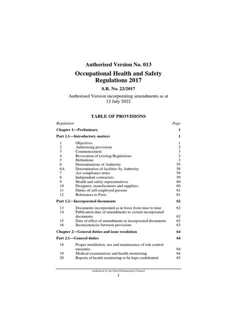 The Occupational Health and Safety Regulations 1996 cover a wide range of areas, each designed to address specific workplace hazards and risks. One key component is hazard identification, which requires employers to actively identify potential dangers in the workplace. This could involve conducting regular inspections, reviewing accident and incident reports, and consulting with employees to get their input on safety concerns. Once hazards are identified, the next step is risk assessment, which involves evaluating the likelihood and severity of potential harm. This helps employers prioritize which risks need to be addressed first and determine the most effective control measures to implement. Control measures can range from simple things like providing personal protective equipment (PPE) to more complex solutions like engineering controls or administrative procedures. For example, if workers are exposed to loud noise, employers might provide earplugs or earmuffs as PPE. Alternatively, they could implement engineering controls like installing noise barriers or isolating noisy equipment. Administrative procedures could include rotating workers to limit their exposure time or providing training on how to work safely in noisy environments. The regulations also cover specific requirements for different types of workplaces and industries. For example, there might be specific regulations for construction sites, manufacturing plants, or healthcare facilities, addressing the unique hazards associated with each environment. These requirements can cover everything from machinery safety and electrical safety to hazardous substances and confined spaces. It’s important for employers to be aware of all the regulations that apply to their specific workplace and to ensure that they are complying with all relevant requirements. Regular training and communication are essential for keeping employees informed about safety procedures and ensuring they understand their rights and responsibilities under the Occupational Health and Safety Regulations 1996 .