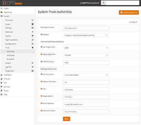 If you don’t already have one, you’ll need to generate a CA. Go to System > Trust > Authorities and click the