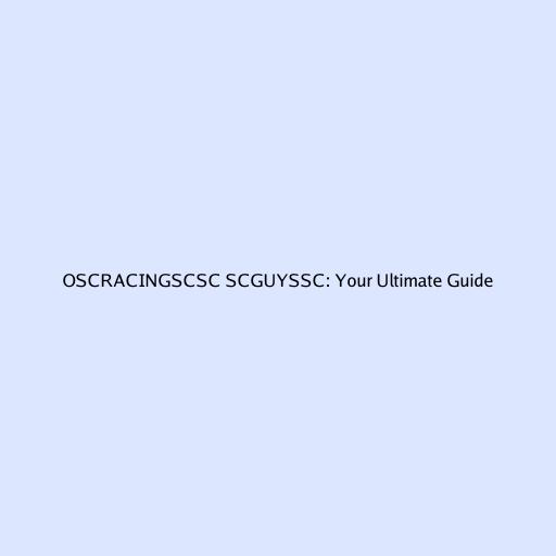 OSCRACINGSCSC SCGUYSSC: Your Ultimate Guide