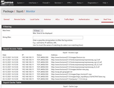 Time to see if everything works as expected! Open a web browser on a client device connected to your LAN. Try browsing to some websites. If everything’s configured correctly, you should be able to browse the web without any certificate warnings. To verify that the proxy is working, you can check the Squid logs (Status > Squid Proxy > Log View). You should see entries indicating that your client’s requests are being processed by Squid. If you see errors or are unable to browse the web, double-check your configurations, especially the firewall rules and the Squid settings. It might be helpful to restart the Squid service (Services > Squid Proxy Server > General). That should make it work. It’s usually a mistake in the configuration.