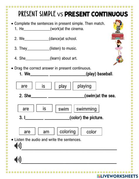 Alright, time for some practical examples to really cement your understanding. Let’s walk through a few exercises to help you differentiate between the present continuous and simple present in real-world contexts.