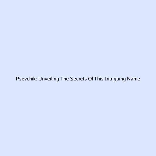 Psevchik: Unveiling the Secrets of This Intriguing Name