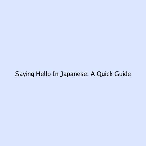 Saying Hello In Japanese: A Quick Guide