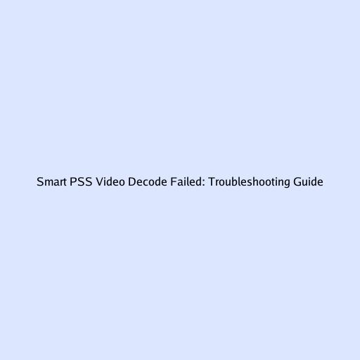 Smart PSS Video Decode Failed: Troubleshooting Guide