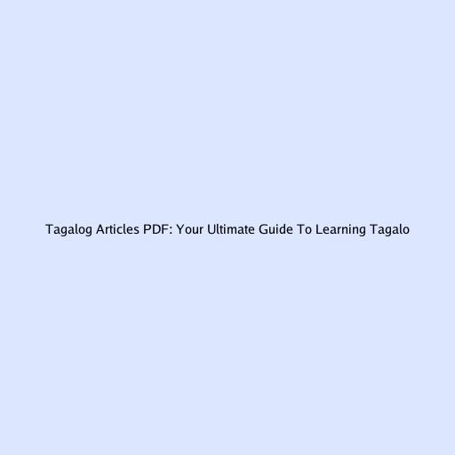 Tagalog Articles PDF: Your Ultimate Guide to Learning Tagalog