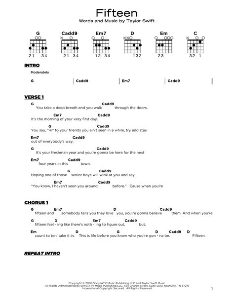 When you’re tackling Taylor Swift guitar chords from the “Fearless” album, like in “Love Story,” the strumming patterns are key to capturing that youthful, energetic vibe. Think about the feel of the songs – they’re often bright, optimistic, and have a sense of forward momentum. For “Love Story” specifically, a common pattern is Down, Down-Up, Up, Down-Up . Let’s break that down: You strum down on the beat, then down and up quickly, then a quick up strum, followed by another down and up. This pattern gives the song its characteristic drive. Another variation that works well for many “Fearless” era songs is a simpler Down, Down-Up, Down-Up . This is a bit more straightforward and can still convey a lot of energy. The trick is to keep the rhythm consistent and to vary the intensity. When Taylor sings louder or the chorus hits, you can strum a bit harder. During the softer verses or bridges, you can ease up on the pressure and volume. For songs like “You Belong With Me,” which also shares similar chord progressions (often G, D, Em, C or variations thereof), you can apply the same strumming principles. The key is to listen closely to the original recordings. Try to tap your foot along with the beat and identify the accents. Are the down strums heavier? Are there quick muted strums in between? Experimentation is your friend here, guys! Don’t be afraid to try slightly different rhythms to see what sounds best to your ear. Many beginners find it helpful to practice with a metronome to develop a solid sense of timing. Start at a slow tempo, maybe 80 bpm, and focus on clean chord changes and consistent strumming. As you get more comfortable, gradually increase the speed. Remember, the goal isn’t just to play the chords, but to play them musically , and that includes rhythm and dynamics. The “Fearless” era is all about that earnest, heartfelt delivery, and your strumming should reflect that.