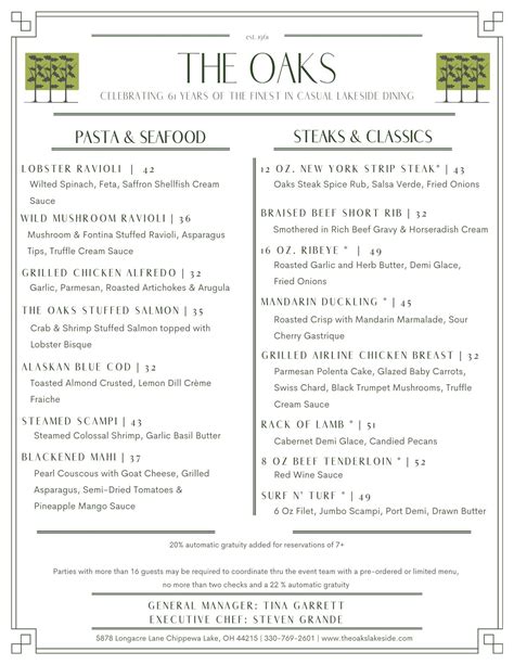 Welcome, foodies! Today, we’re diving deep into The Oaks Menu , a place that’s been buzzing with talk for its incredible food. You know, sometimes you just stumble upon a spot that really gets it right, and The Oaks seems to be that kind of gem. Whether you’re a seasoned diner looking for your next favorite dish or a newbie trying to figure out what all the fuss is about, you’ve come to the right place. We’re going to break down what makes their menu so special, explore some of the must-try items, and give you the lowdown on why The Oaks Menu should be on your radar.