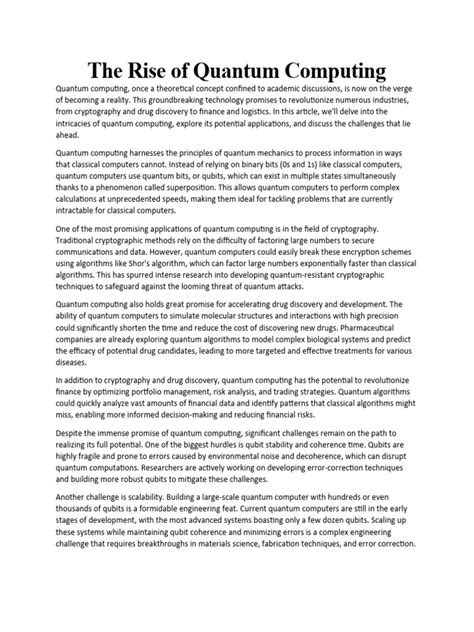 Furthermore, quantum computing has profound implications for cryptography and cybersecurity . While quantum computers pose a threat to current encryption methods (the