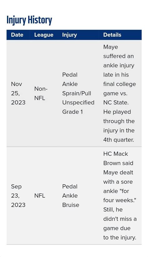 Remember, when you are looking at injury data, it is important to remember that every player is different. Some players are naturally more injury-prone than others. Moreover, the circumstances of the injury and the treatment they received can also influence their recovery and their long-term health. Don’t be afraid to cross-reference the data with other sources, such as news articles or social media posts, to get a well-rounded picture. Also, consider the player’s age. Injuries can be more common and potentially more serious for older players. By taking a closer look at the injury data, you can improve your understanding of the player’s risk factors. This will help you to make more informed decisions about the player, and about the team’s future as a whole.