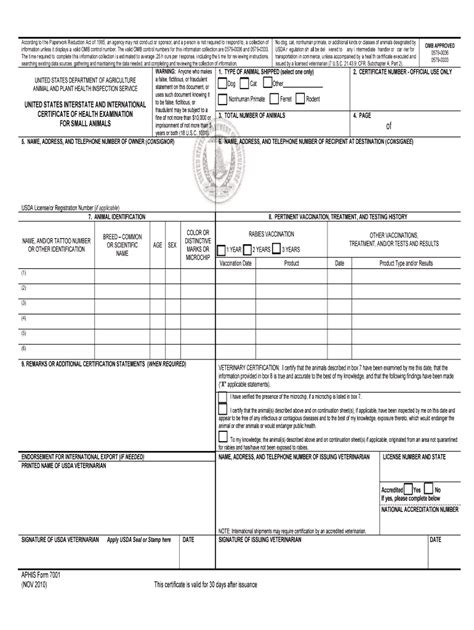Hey guys, let’s talk about something super important for anyone involved with moving animals across state lines: the USDA APHIS Form 7001 . If you’re a livestock producer, a show animal owner, a veterinarian, or even someone transporting rescue animals, this form is a non-negotiable part of the process. It’s not just a piece of paper; it’s a critical document for ensuring the health, safety, and traceability of animals during interstate and even international travel. This form, officially known as the “United States Interstate and International Certificate of Health Examination for Small Animals” or simply the “Interstate Certificate of Health” for larger animals, plays a pivotal role in safeguarding our animal populations from diseases. Think of it as a passport for your animal, providing essential health information that is verified by a licensed veterinarian. The primary goal behind USDA APHIS Form 7001 is to prevent the spread of infectious diseases, which can have devastating economic and public health consequences. Imagine the impact if a highly contagious disease were to spread unchecked due to inadequate health checks for animals moving between states!