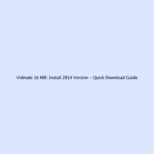 Vidmate 16 MB: Install 2014 Version - Quick Download Guide