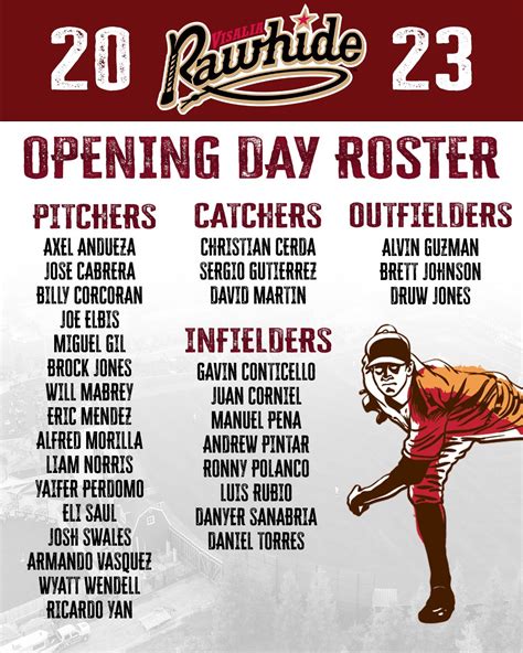 The heart and soul of any baseball team are the players, and the Visalia Rawhides are no exception. Each season brings a fresh crop of talented athletes eager to make their mark on the field and climb the ranks to the Major Leagues. These young men dedicate countless hours to honing their skills, both on and off the field, striving to reach their full potential. Getting to know the players is a big part of the fun! Keep an eye out for standout pitchers with blazing fastballs, sluggers who can knock the cover off the ball, and defensive wizards who make highlight-reel plays look routine.