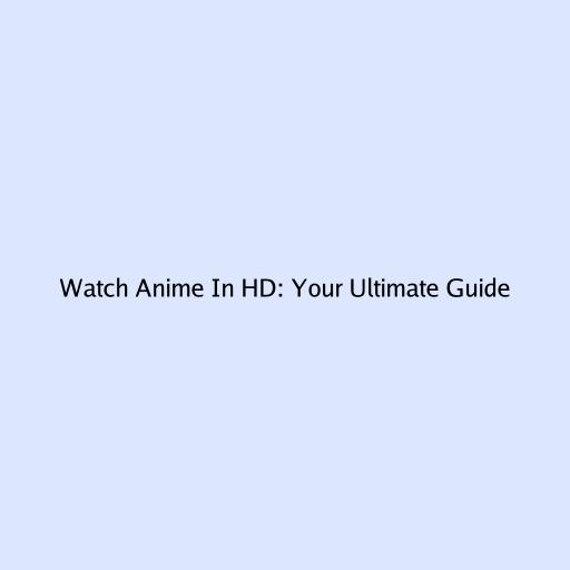Watch Anime in HD: Your Ultimate Guide